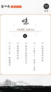 填籍蜀地 ,客居锦城,安家立业 ,从于食肆,小小屋檐下,是妈妈对家的支撑,世代繁衍, 生生不息。