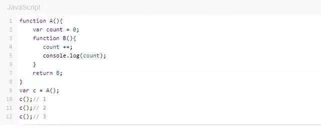 count是A中的一个变量,它的值在B中被改变,函数B每执行一次,count的值就在原来的基础上累加1。因此,A中的count一直保存在内存中。