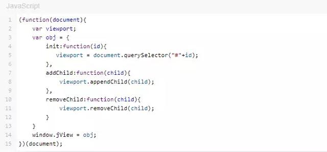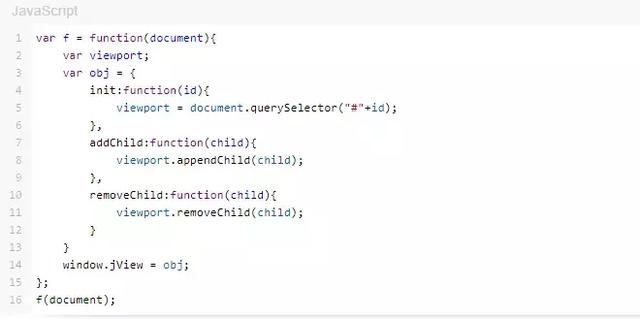 obj 是在 f 中定义的一个对象,这个对象中定义了一系列方法, 执行window.jView = obj 就是在 window 全局对象定义了一个变量 jView,并将这个变量指向 obj 对象,即全局变量 jView 引用了 obj . 而 obj 对象中的函数又引用了 f 中的变量 viewport ,因此 f 中的 viewport 不会被GC回收,会一直保存到内存中,所以这种写法满足闭包的条件。