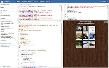 按照现在应用程序更新换代的速度来看,JSFiddle算的上是十分古老的在线编辑器了。它可以用于HTML、CSS和JavaScript的任意组合测试,并且包含了各种流行的JavaScript库。今天看起来功能有点基础,但也提供了一些高级功能,如Ajax模拟器。