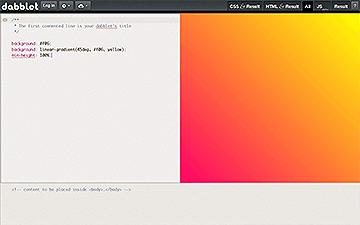 另一个早期的编辑器是Dabblet,由Lea Verou开创的JavaScript / CSS3演示系统。它看起来很华丽,并自动翻译所有的CSS。除了具备基本的功能外,它还可以在云端在线保存代码,程序员就不需要担心代码丢失了。