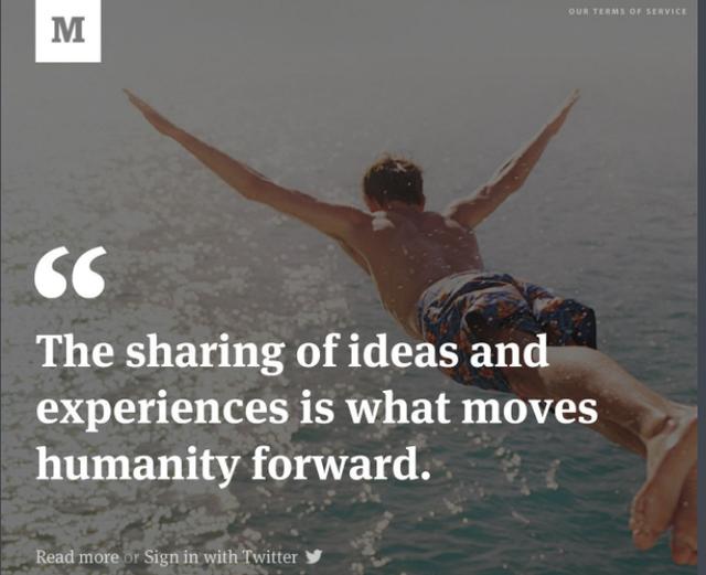 全球最大的高质量创作型内容平台。Medium是一个新的自助内容发布平台,由Twitter联合创始人埃文·威廉姆斯(Evan Williams)和比兹·斯通(Biz Stone)联手推出。跟其他博客平台不同,Medium上的博主不需要开展市场营销活动,宣传自己。普通人也可以阅读其他普通人发布的内容。